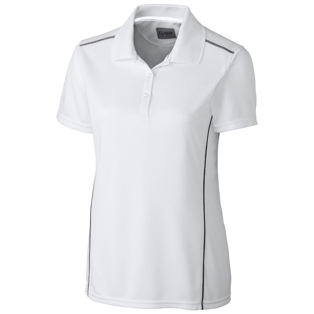 The Clique Women's White Ice Sport Polo is the perfect shirt to wear on the golf course, on the tennis court, or for lounging around the house. You can add a company logo to the front of the shirt and you'll have a corporate apparel item to hand out that everyone is sure to love. Choose from a dozen unique and vibrant colors and order this shirt that comes complete with sure-to-be-appreciated features including a cool 100% polyester mesh fabric, rib knit collar, three-button placket, open sleeves, and moisture wicking components.Corresponding Men's Style:Clique Men's White Ice Sport Polo