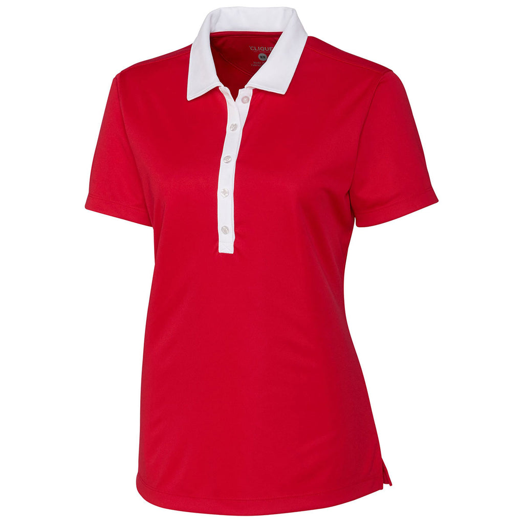 The Clique Women's Red/White Parma Colorblock Polo offers a stylish design and comfortable fit. When you add your embroidery custom logo to the front, you have a corporate apparel item that you can hand out as employee apparel or distribute at upcoming trade shows and golf events. Available in a variety of eye-catching color schemes, this women's polo shirt also includes wonderful features such as a light 100% polyester fabric, self-collar with four-button placket, and coverstitch detailing. This modern style shirt is sure to be a fan favorite, so be certain to buy this item in bulk!Corresponding Men's Style:Clique Men's C Red/C Titan Parma Colorblock Polo