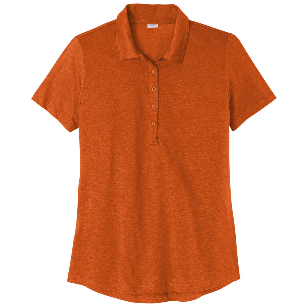 Stand out in a custom embroidered Sport-Tek Women's Texas Orange PosiCharge Strive Polo that is inspired by streetwear, but maintains a put together look. The elevated heathered polos are moisture wicking and help maintain color and logos due to the PosiCharge technology. Add a custom logo to create a look for your school, team, or club that will stand out among the crowd, Try a company logo to use as employee apparel for special events or daily wear as this polo is ready for whatever your day holds.