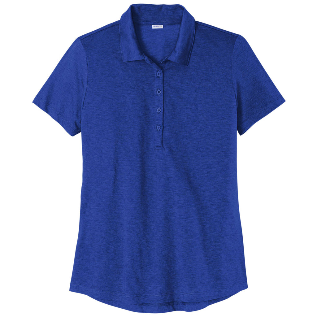 Stand out in a custom embroidered Sport-Tek Women's True Royal PosiCharge Strive Polo that is inspired by streetwear, but maintains a put together look. The elevated heathered polos are moisture wicking and help maintain color and logos due to the PosiCharge technology. Add a custom logo to create a look for your school, team, or club that will stand out among the crowd, Try a company logo to use as employee apparel for special events or daily wear as this polo is ready for whatever your day holds.Corresponding Men's Style:Sport-Tek Men's True Royal PosiCharge Strive Polo
