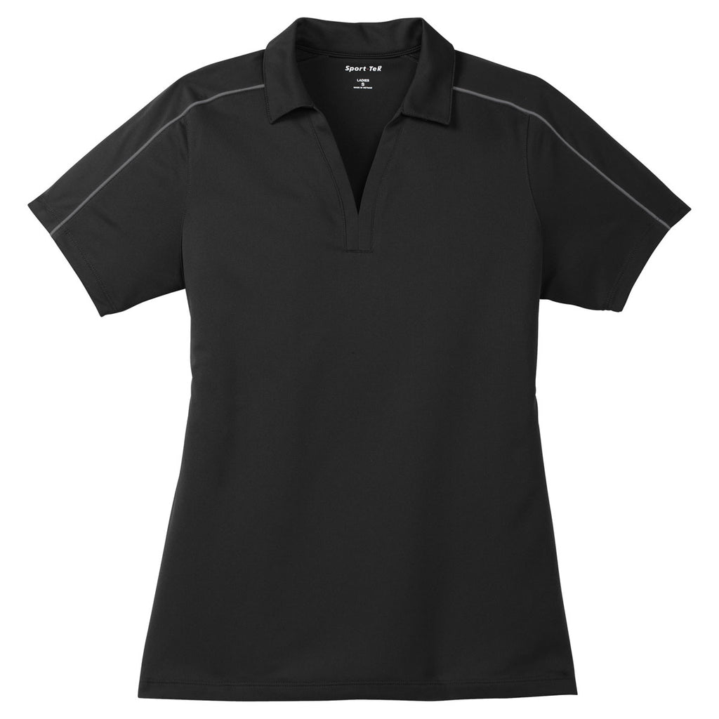 Sport-Tek Women's Black/Iron Grey Micropique Sport-Wick Piped Polo