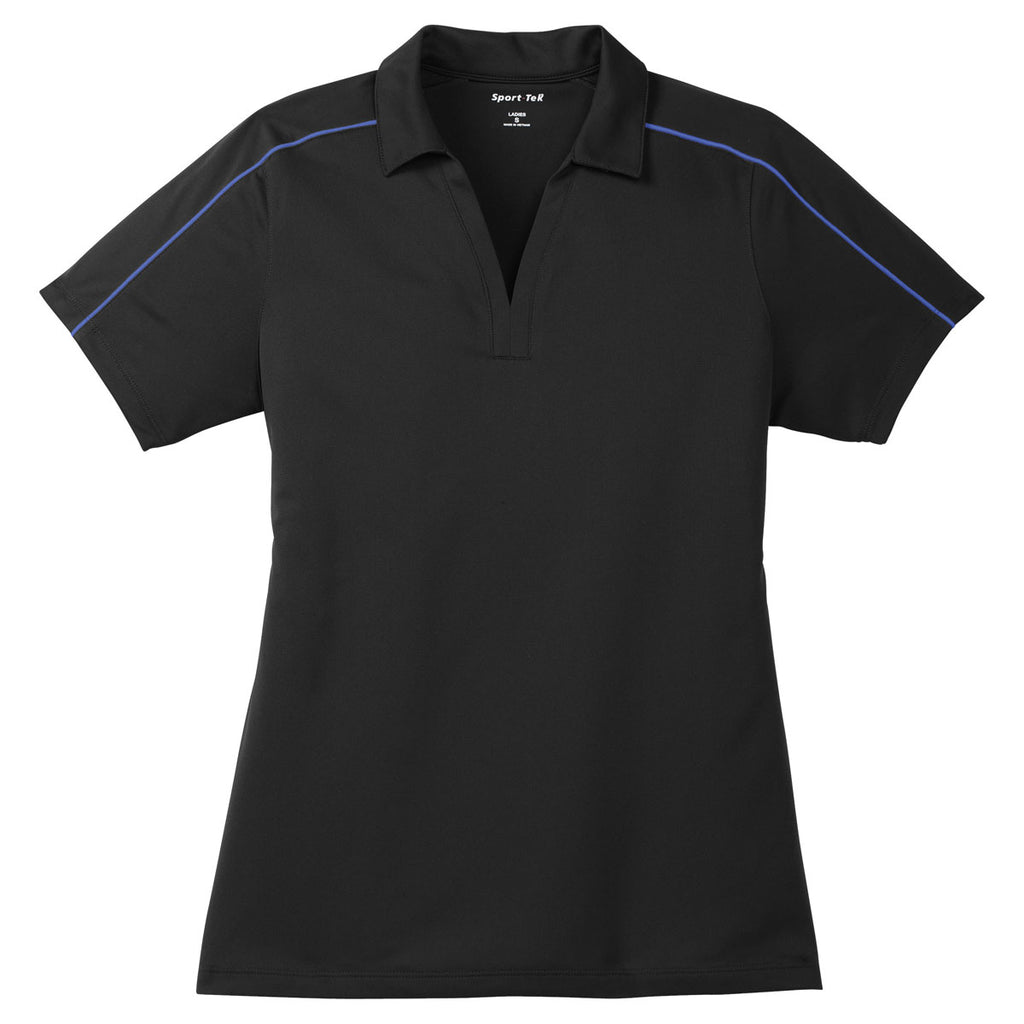 Sport-Tek Women's Black/True Royal Micropique Sport-Wick Piped Polo