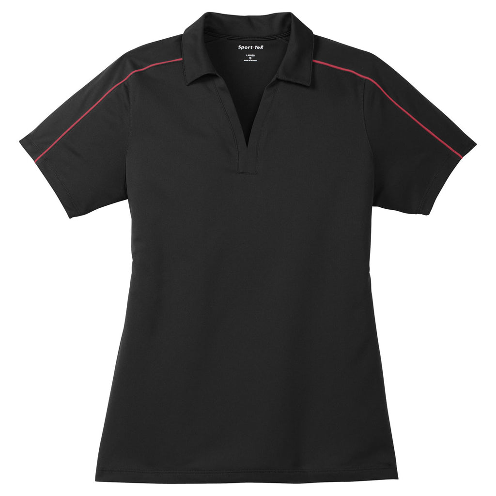 Sport-Tek Women's Black/True Red Micropique Sport-Wick Piped Polo