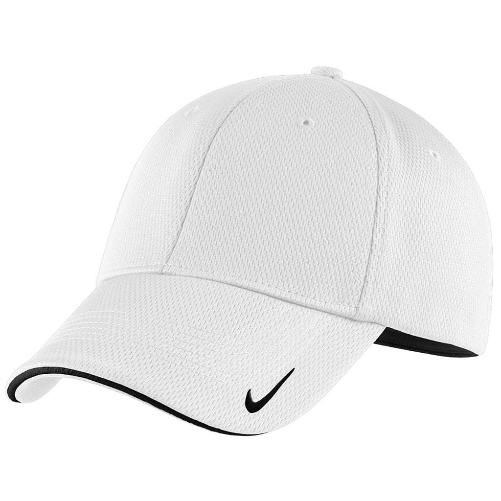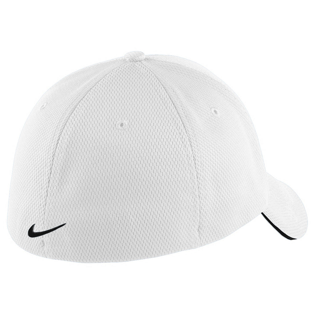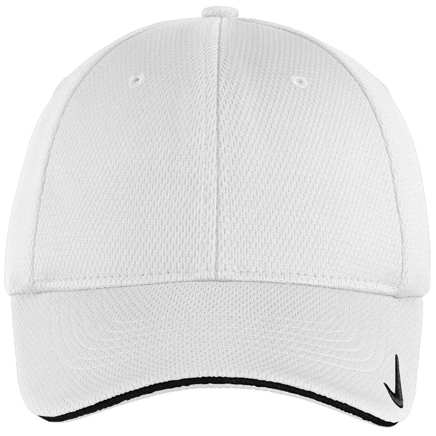 A classic corporate Nike Golf hat will never go out of style. Not only can the custom Nike White/Black Dri-FIT Stretch Mesh Sandwich Bill Cap be worn out on the golf course, but it's a logo-branded cap that can easily be added to any casual wardrobe. This is a contemporary bill cap that is engineered with advanced moisture-wicking technology. It has a structured, mid-profile look to it, a Swoosh Flex sweatband to ensure an exceptional fit and a contrast Swoosh design on the bill.