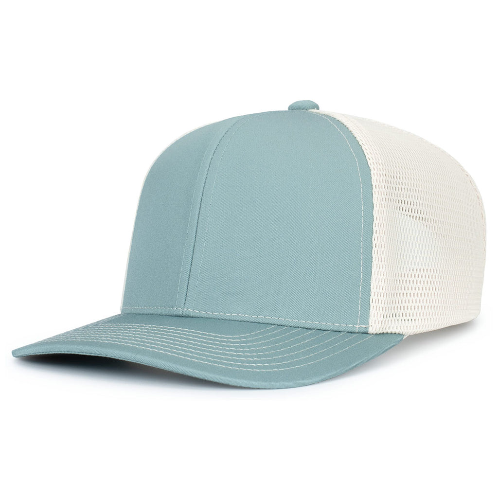 Add your corporate logo to the Pacific Headwear Smoke Blue/Beige/Smoke BlueContrast Stitch Trucker Pacflex Snapback Cap for a fun and simple way to showcase your brand. The iconic trucker cap is a one-size-fits-most adjustable design with mesh backing, a mid-profile, and a curved visor that is easy to wear and share, whether at a trade show, special event, or to increase customer relations. Order today.