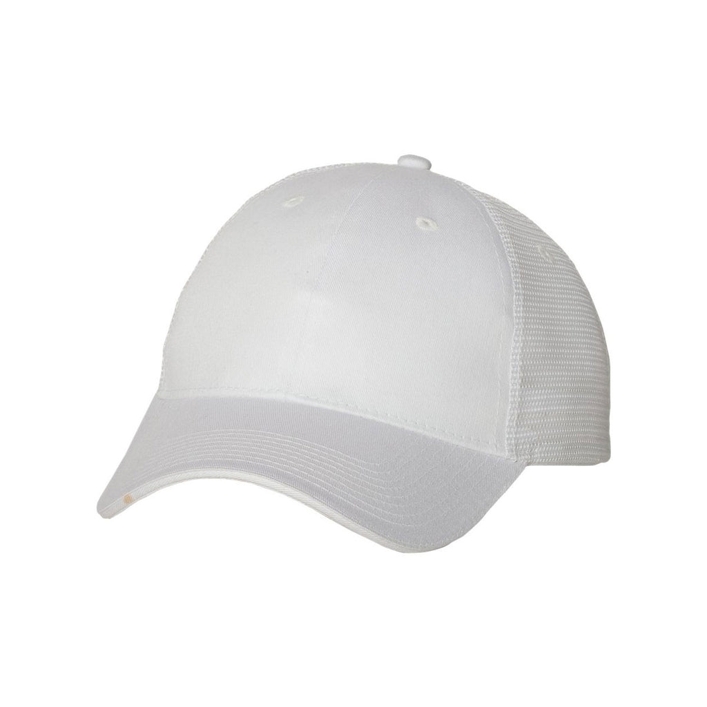 When you need headwear for a long trek cross country, put on the custom logoed Valucap White/White Sandwich Trucker Cap. Designed with a cotton and polyester blend, the super soft cap resists rips and tears to keep the headwear in pristine condition for years to come. One-hundred percent polyester mesh in the back of the hat helps circulate air to keep you comfortably cool. Structured six panels present a professional appearance for customers who apply their skills outdoors. The mid profile design keeps the sun out of your eyes during corporate softball games. Attach your company logo to get the word out about your products and services.Highlights