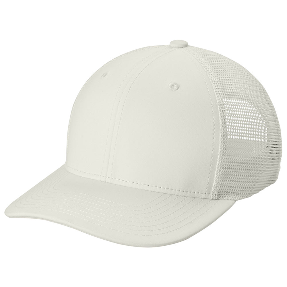 Add your custom logo to the Sport-Tek White/ White Club Trucker Cap to make sure your brand gets recognized. This one-size-fits-most cap is adjustable with a snapback closure in true trucker style. The structured, mid-profile with mesh backing has a curved bill and moisture-wicking sweatband. Great as a promotional item.Highlights