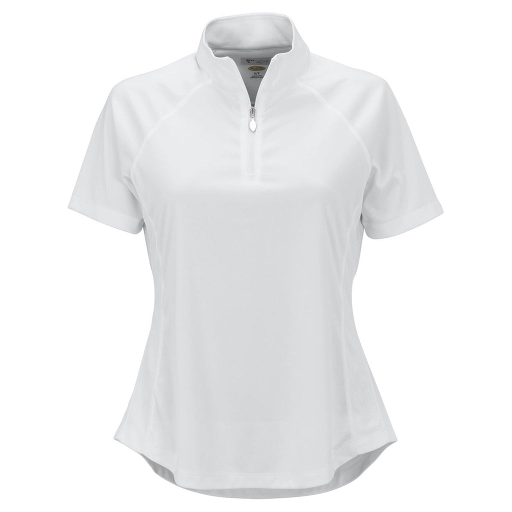 Greg Norman Women's White/White Mesh Panels Play Dry ML75 Racer Mock Neck Polo