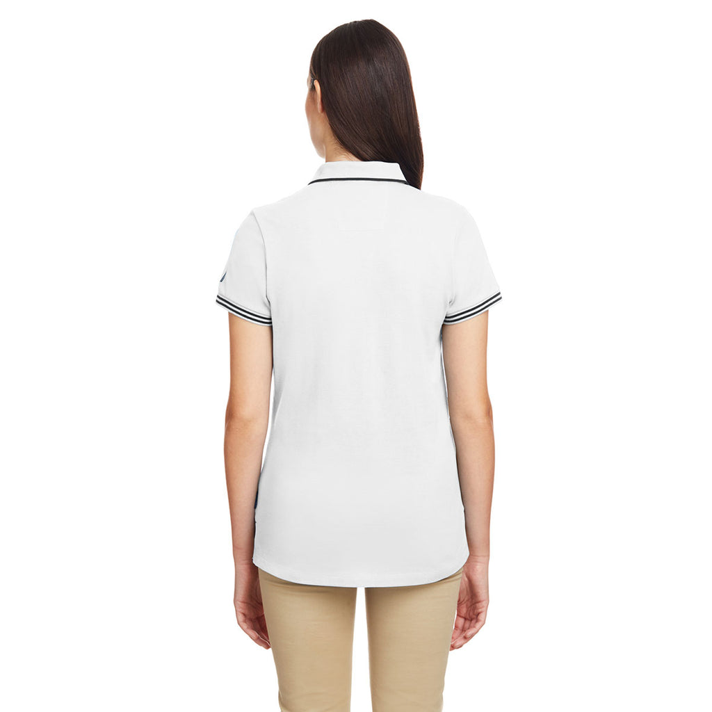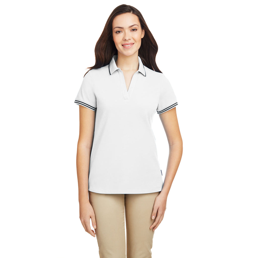 Get noticed in a custom Nautica Women's White Deck Polo made of a cotton and polyester blend for all day comfort wear. The simple polo has a flattering fit, but offers a little flair with striped tipping and neck tape. Add a company logo to use this as employee apparel or layer to use as more formal corporate apparel. A custom logo means this is great for an employee event in which certain people need to stand out like at a trade show or team building exercise. Relax on the back nine or at the clubhouse with this short-sleeve polo that will have you making deals and winning rounds.