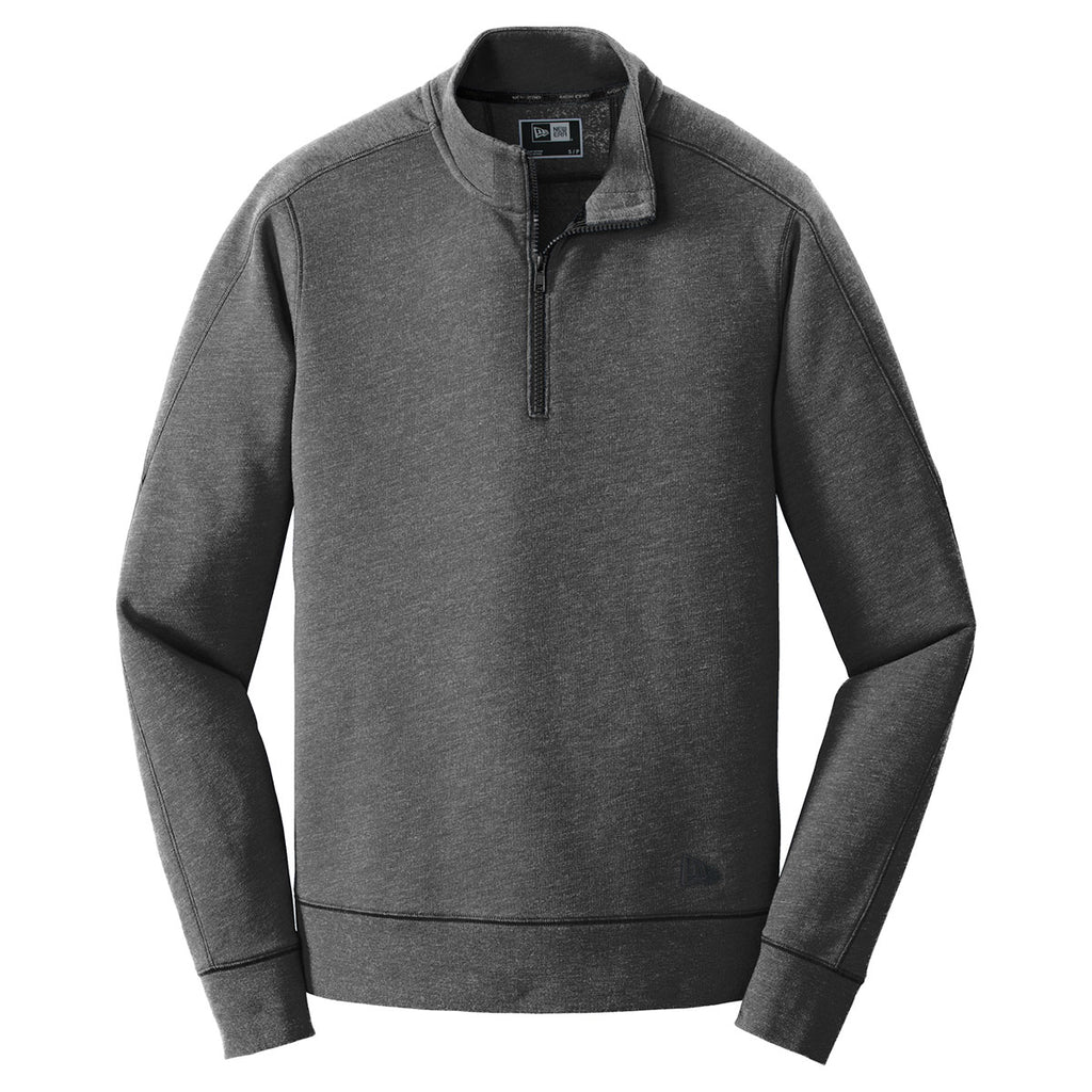 Thank the loyal customers who drive sales by giving the embroidered New Era Men's Black Heather Tri-Blend Fleece 1/4 Zip. The sleek quarter-zip includes unique design features, such as rolled-forward shoulders and the heathered fabric. Cover stitched seams handle all of the punishment delivered by high-intensity sports. Rugged polyester and rayon resist the types of rips and tears that force professionals to dig deeper into the corporate apparel closet. Super soft cotton keeps you feeling fresh all day long. Attach a custom logo on the large imprint area and watch awareness of your company reach a record level.