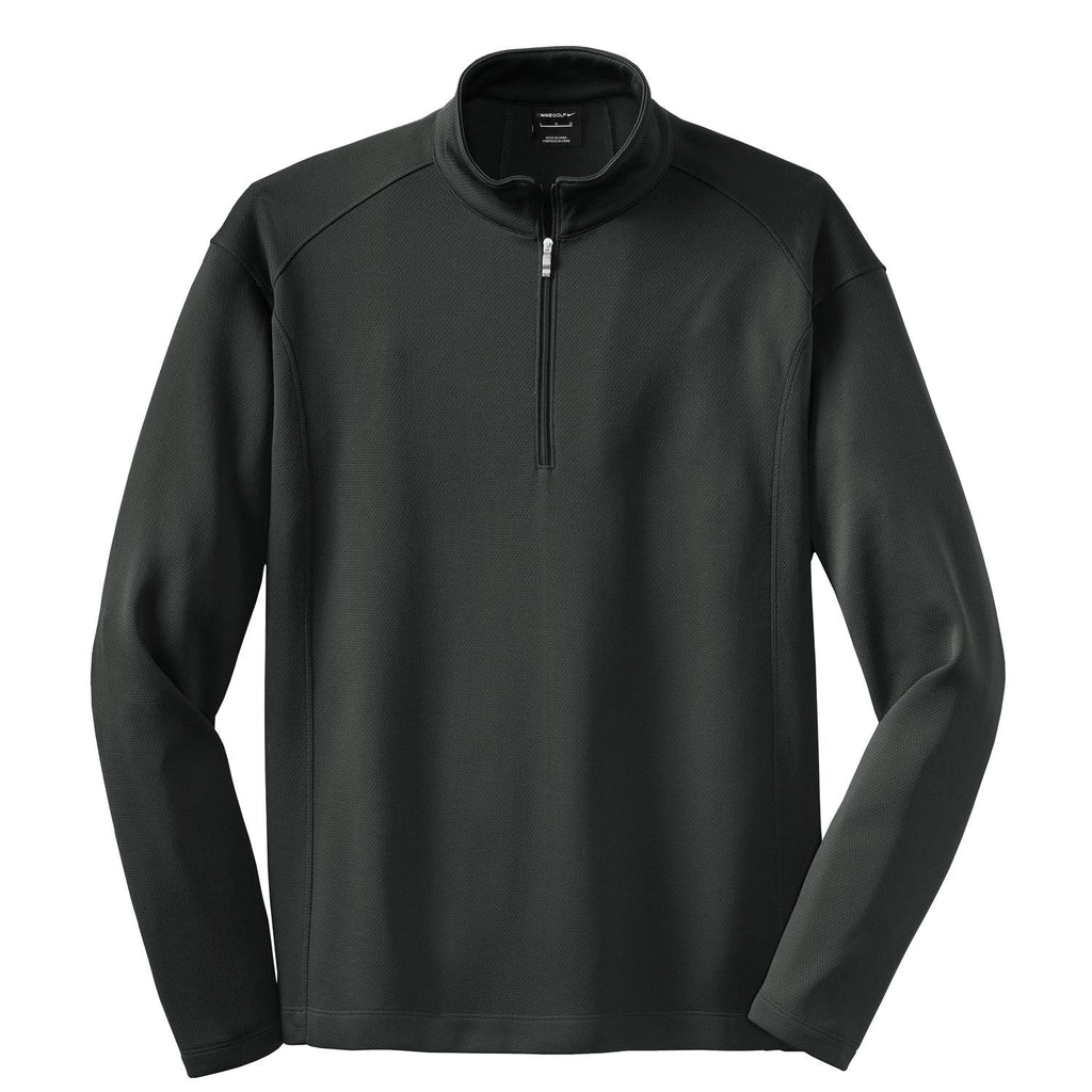 The Nike Men's Dark Grey Long Sleeve Sport Quarter Zip is comfortable enough to wear as its own item and stylish enough to layer. In addition, the Nike Golf Anthracite Grey Sport Quarter Zip has a zip-through collar, a subtle textural finish and of course, the classic Nike Golf Swoosh trademark design on the back neck. This is a great piece to wear when there is a chill in the air or when you just want to be on the right side of golf fashion.