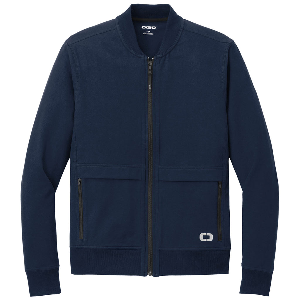 The OGIO Men's River Blue Navy Outstretch Full Zip is an activewear staple that will make your team look stylish while also drawing attention to your company's custom logo. Made from a knit fabric with enough stretch to keep your team comfortable, this classic piece draws inspiration from classic bomber jacket silhouettes.