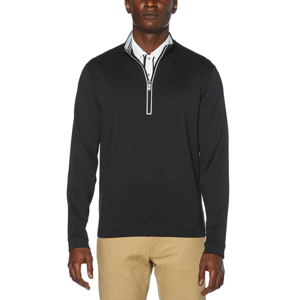 Stay classy in a logoed Original Penguin Unisex Caviar Black Clubhouse Mock Pullover. This long sleeve pullover offers a put together look that will serve well as an employee uniform or school uniform as needed. Add a company logo to wear these at fall golf events as a player or viewer. The polyester rich spandex blend has a 1/4 zip front with contrast tipping around the zipper. The Pete logo rests on the left front collar to show quality on this mock neck pullover that will be an instant hit.