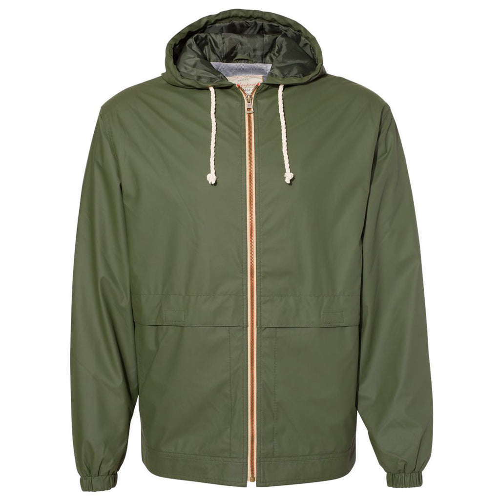 Take vintage to new heights with embroidery added to the Weatherproof Men's Bronze Green Vintage Hooded Rain Jacket. A throw back to traditional hooded rain coats this lightweight 100% water resistant polyurethane jacket is fully lined for a bit of warmth and has a full zip front closure. Add your company logo or corporate embroidery to this piece as an option for those who have to work in inclement weather or as general employee apparel. Available in a range of size and color options, this rain jacket would make a wonderful employee gift that is also highly useful. Using your design, create a line that can be shared in a shop or store as needed.Highlights