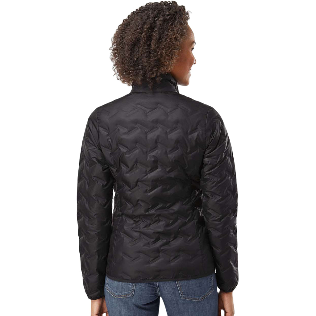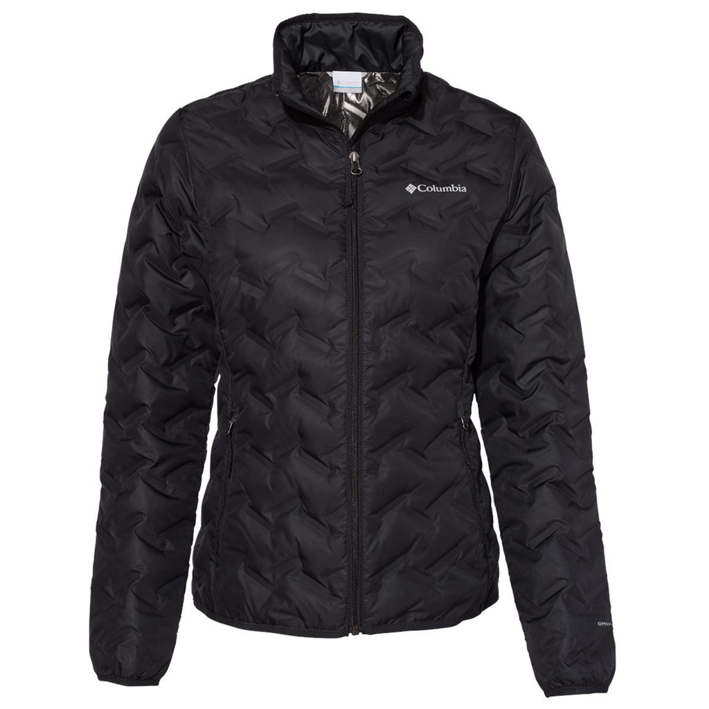 Choose a unique embroidery for the Columbia Women's Black Delta Ridge Down Jacket to create a custom look that can be worn anywhere. The warm-down jacket has thermal reflective heat seal construction, binding at the collar, cuffs, and hem, and a chin guard to keep you toasty when the weather is questionable. Perfect for work and school.This product cannot ship outside of the United States.