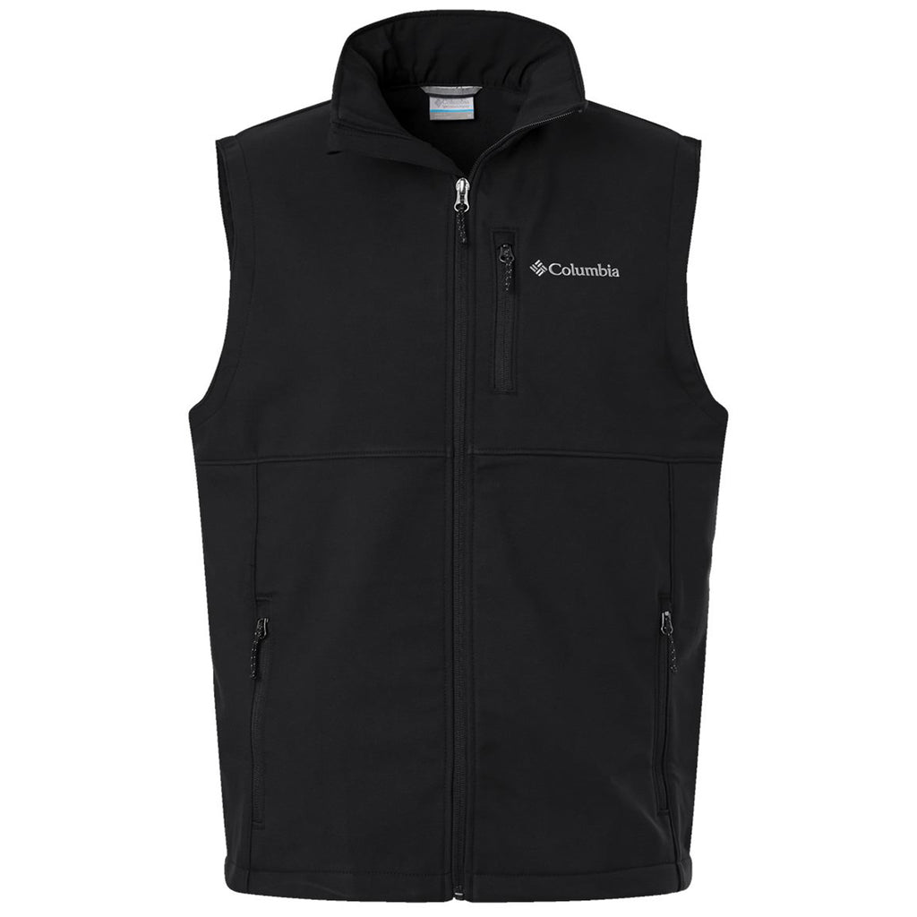 Columbia Men's Black Ascender Soft Shell Vest with a corporate logo is a fun and convenient way to showcase your company of brand. The polyester vest with fleece lining is perfect for those who work inside customer homes, man a booth at a trade show, or put on special events in which the company needs to be recognized.This product cannot ship outside of the United States.