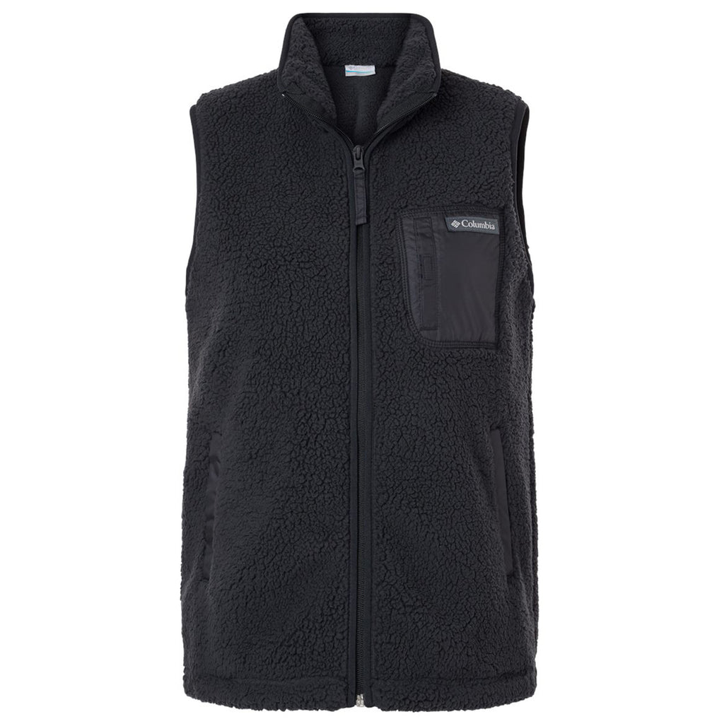 Choose embroidery for the Columbia Women's Black West Bend Vest for a classic look that can upgrade your style. This warm polyester sherpa vest is perfect for those cool autumn days while you enjoy the Great Outdoors. Dress up a pair of jeans as you sit around the campfire or use this vest as a middle layer when playing in the snow in the winter.This product cannot ship outside of the United States.