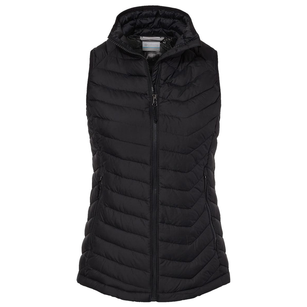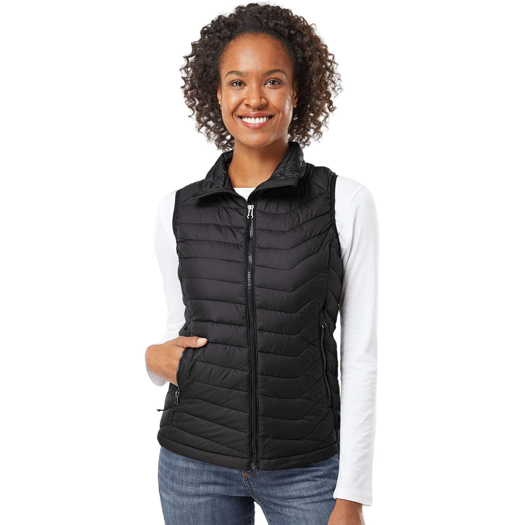 Columbia Women's Black Powder Lite Vest with a custom logo is a stylish way to stay warm throughout the day. The recycled polyester vest is insulated with thermal reflective lining, an adjustable hem, and zippered hand pockets, making it ideal for hiking, camping, or exploring the wilderness. Wear as a middle or outer layer.This product cannot ship outside of the United States.