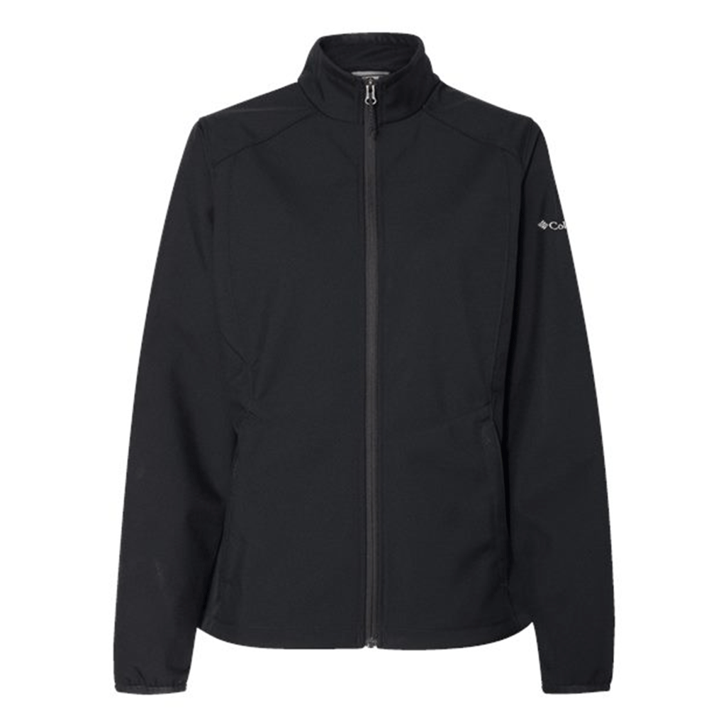 Columbia Women's Black Kruser Ridge Soft Shell Jacket with embroidery is a great gift that everyone can appreciate. The soft polyester shell with fleece lining is warm and cozy whether you are making the morning commute, hanging out with friends, or just enjoying the day outdoors. Place an order for this must-have right away.