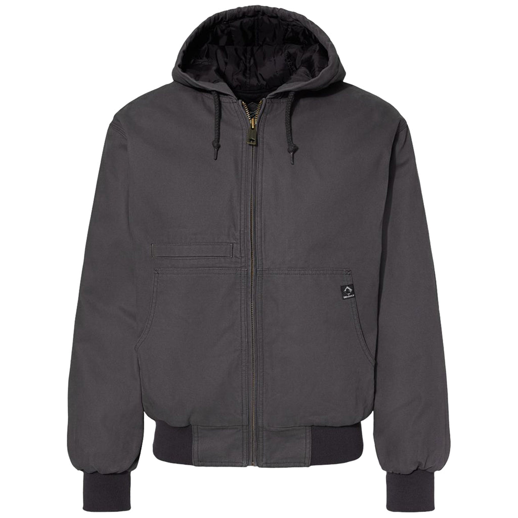 Choose a custom design for the Dri Duck Men's Charcoal Laramie Power Move Jacket to create employee apparel that commands respect. This cotton Canyon Cloth canvas is heavier for outdoor wear with a brushed tricot upper body panel and quilted nylon lower body panel with polyfill. Flex Action means you can keep working while wearing without restricting mobility. A drawstring hood keeps you further protected whether hiking, working the high lines, or doing general outdoor tasks.