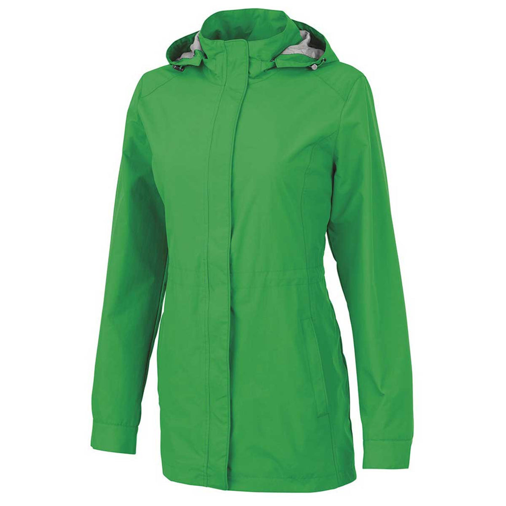 You want full protection from the elements when you go outside so you never feel caught in the rain. But you don't want to look like you're completely out of your element, either. What's the right solution? This Charles River Women's Kelly Green Logan Jacket, which delivers both style points and weather resistance. The 100% nylon construction is surprisingly durable even in the elements, while the interior drawstring allows you to cinch the fit for a stylish silhouette. You can even add a hood or keep it zipped off if you don't think it's going to rain. Add your custom logo to complete this picture and you'll be ready for anything.Highlights