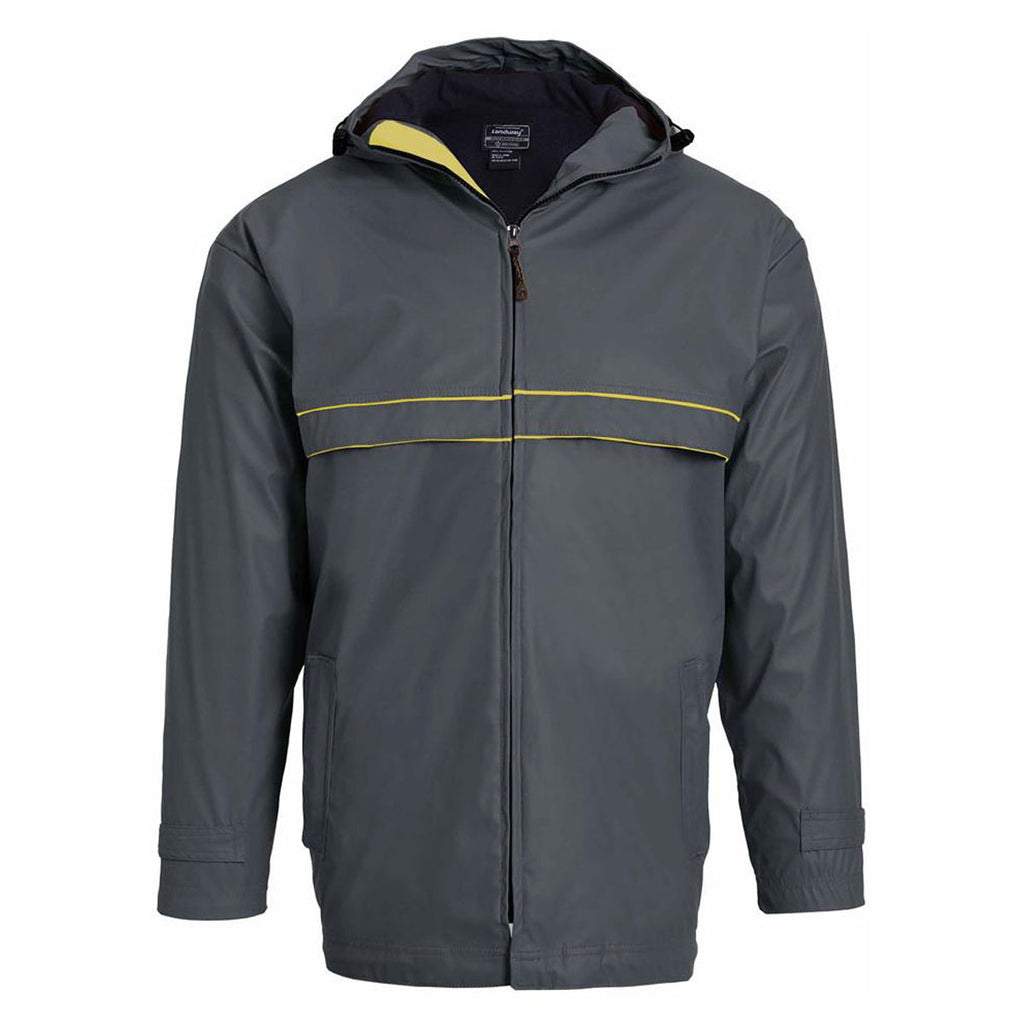 With your corporate logo attached on the embroidered Landway Men's Navy/Yellow Northwest Hooded Rain Slicker, you create an effective marketing tool for your company. The waterproof polyurethane shell forces rain and snow to slide off the polyester surface. Adjustable cuffs that close by attaching Velcro straps prevent cold air from sending shivers up your arms. Microfleece adds a layer of warmth by trapping body heat. Make the rain slicker a part of your next outdoor adventure to prepare for the unpredictability of Mother Nature. Your employees will be more than happy to promote your brand when your custom logo is attached to this jacket from Landway.Highlights