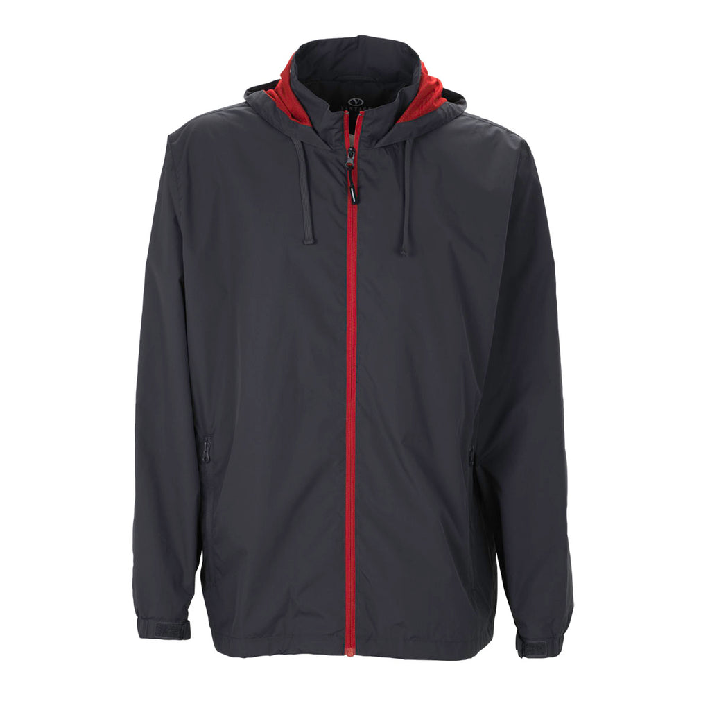 Join an exclusive club every time you put on the embroidered Vantage Men's Dark Grey/Sport Red Club Jacket. Contrasting design elements make the stylish jacket stand out in a crowded corporate apparel category. Polyester fabric resists rips and tears to ensure you enjoy a high performance jacket for years to come. The Zocket dual purpose embroidery pocket conveniently folds into self-pouch. Micro poplin body comes with a water resistant finish and the lined hood keeps the most important part of your body comfortably warm. Add a custom logo on the large imprint area to create more recognition for your company.Corresponding Women's Style: Vantage Women's Dark Grey/Sport Red Club Jacket