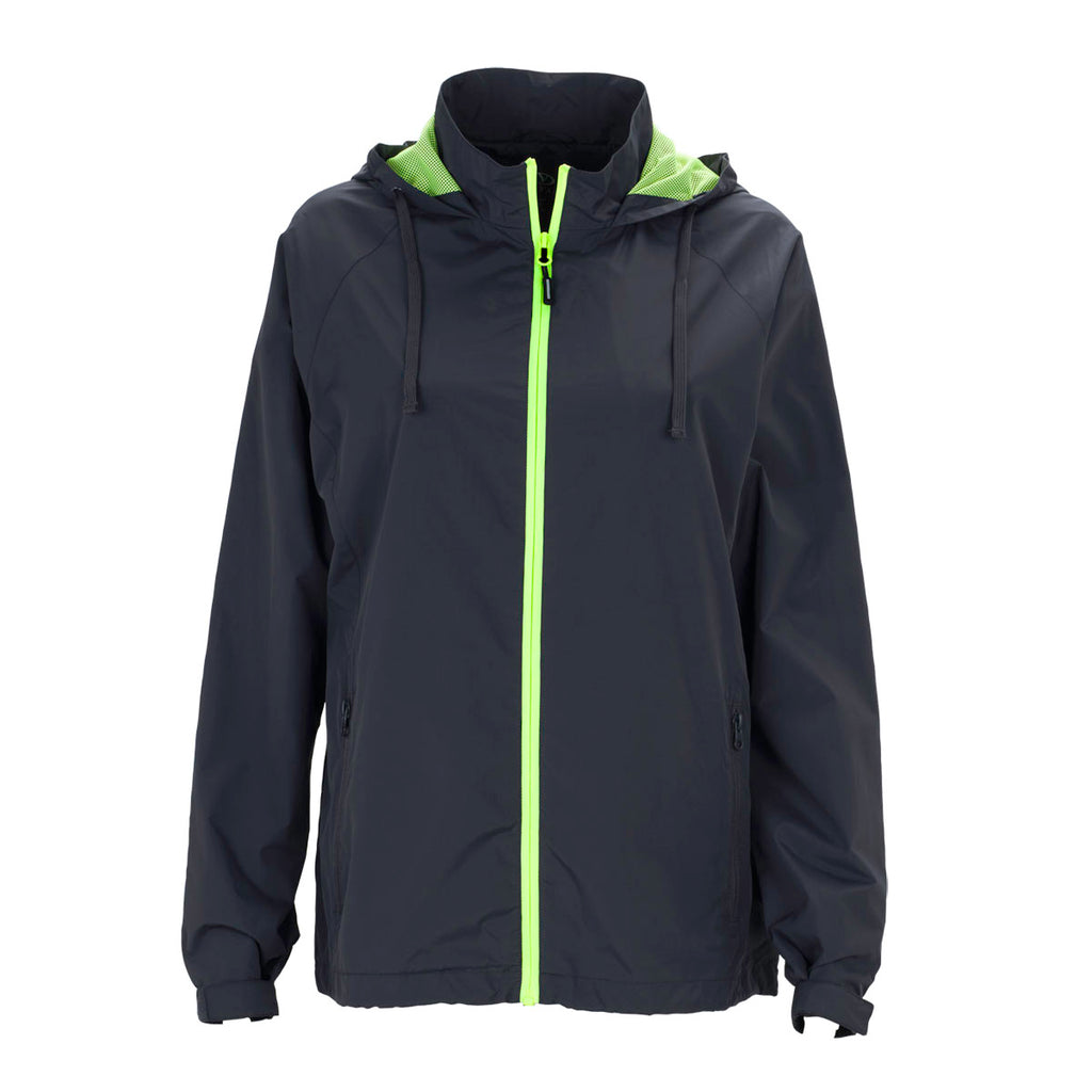 When it rains, it does not pour, as the company logoed Vantage Women's Dark Grey/Citron Club Jacket keeps your body dry. The water repellent finish applied to the micro-poplin exterior of the jacket forces raindrops to slide off the surface. Contrasting mesh in the main section of the jacket circulates air to cool the body when the temperature rises. The lightweight corporate apparel contains highly durable polyester that handles everything the great outdoors throws at it. Hood lining traps heat to ensure your neck and head remain warm. Attach your corporate logo on the large imprint area to give your company more clout in the community.Corresponding Men's Style: Vantage Men's Dark Grey/Citron Club Jacket