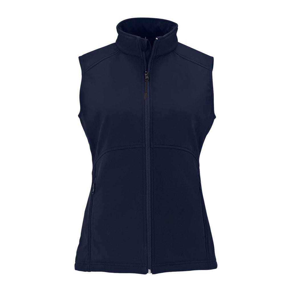 The quest for finding high-end fashion has ended with the introduction of the embroidered Vantage Women's Navy Quest Bonded Vest. Enjoy maximum comfort delivered by the breathable inner membrane. The water repellent finish prevents Mother Nature from turning an active day in the wilderness into a soggy mess. Fashion conscious professionals will love the forward shoulder and curved chest seam that exude panache. Spandex blended with highly durable polyester produces a stretchable fabric that increases your body movement flexibility. Attach your company logo on the large imprint area to generate buzz for your brand at corporate events.Corresponding Men's Style: Vantage Men's Navy Quest Bonded Vest