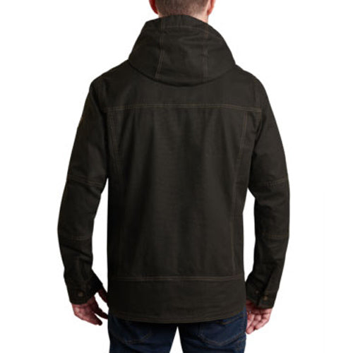 Design an embroidery for the KUHL Men's Espresso Law Hoody for a heavy duty look that is up for the hard work you do each day. Add a company logo to the durable, stretch canvas hoody to use as employee apparel that is tough enough for almost every job. The rugged reliability of this hoody is what makes it a preferred choice by many. The generous cut allows for layering to accommodate for varying weather as every day work wear. The connected hood zips to chin level for added protection against the elements whether you are at work, out on a hunt, or hiking for enjoyment. Place an order today to have these as part of your logoed apparel line.Highlights