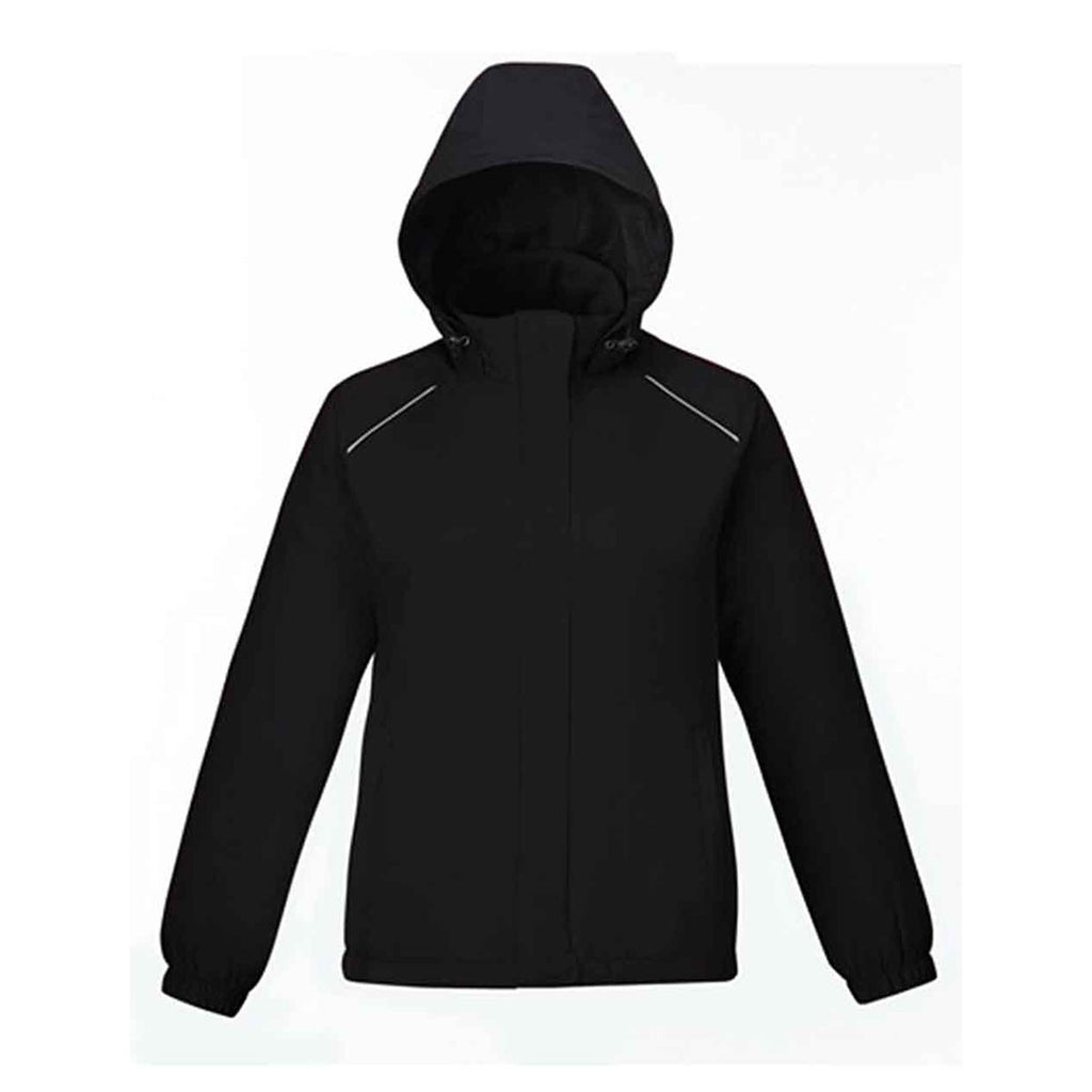 One hundred percent polyester microfiber twill ensures you remain warm at all times wearing the Core 365 Women's Black Brisk Insulated Jacket. The roll away hood gives you instant protection against a sudden onslaught delivered by Mother Nature. Elasticized cuffs ensure maximum movement flexibility for your arms and hands during cold weather home improvement projects. Enjoy your favorite tunes by connecting an iPod to the audio port located inside of the left pocket. Add your corporate logo to make your company stand out at civic and professional networking events. Logoed corporate apparel makes ideal corporate gifts for your loyal customers.Corresponding Men's Style: Core 365 Men's Black Brisk Insulated Jacket
