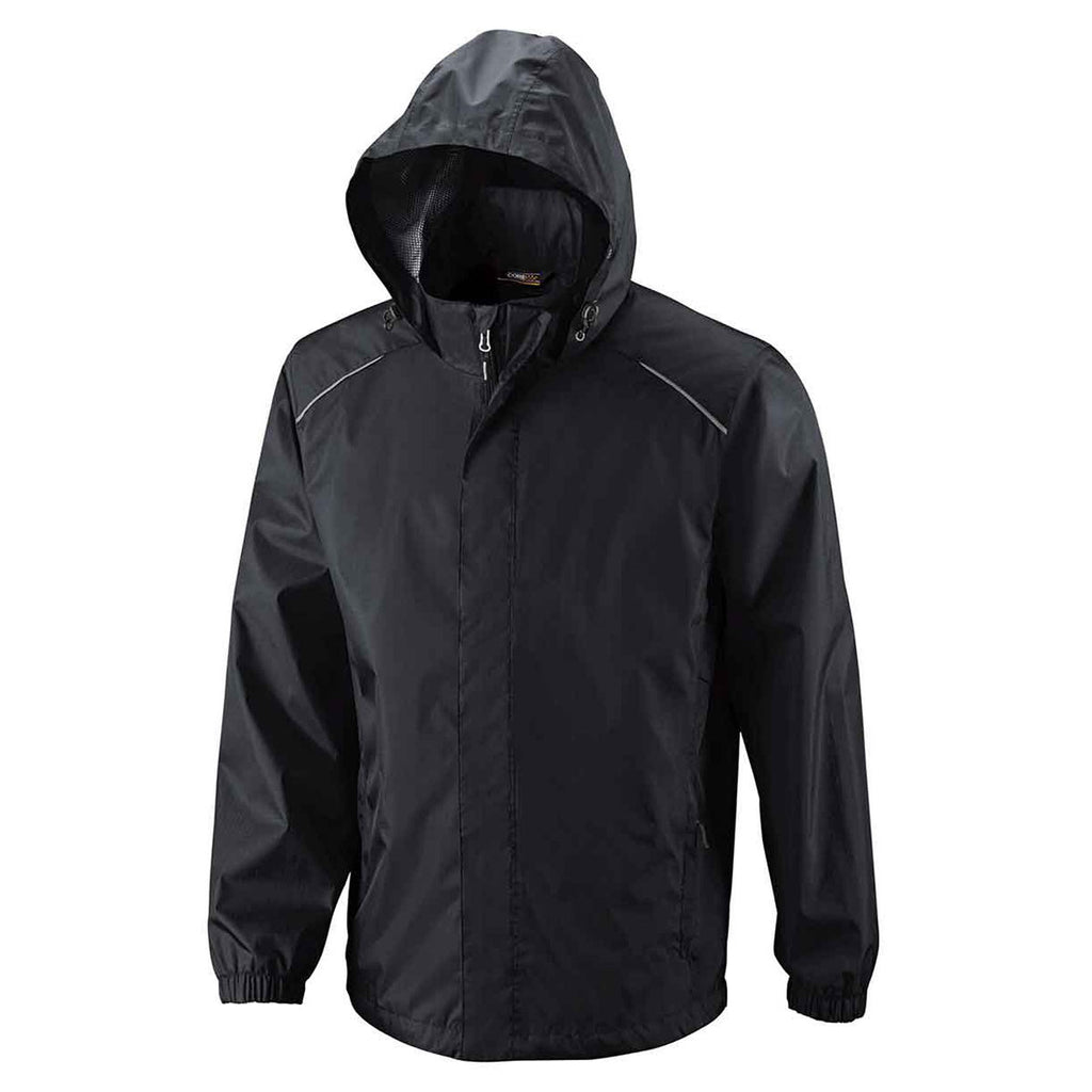 The Core 365 Men's Black Climate Seam-Sealed Lightweight Variegated Ripstop Jacket is lined with 100% fine mesh polyester to produce a highly breathable outer garment for every season. Enjoy moisture wicking technology, as well as the fully seamed waterproof shell that ensures you stay dry during camping and hunting trips. Roll away the adjustable hood whenever the temperature climbs to a comfortable level. The back and underarm vent system enhances the breathability of the jacket. Elastic cuffs ensure maximum arm and hand mobility. Add your company logo to reach potential customers in the community.Corresponding Women's Style: Core 365 Women's Black Climate Seam-Sealed Lightweight Variegated Ripstop Jacket