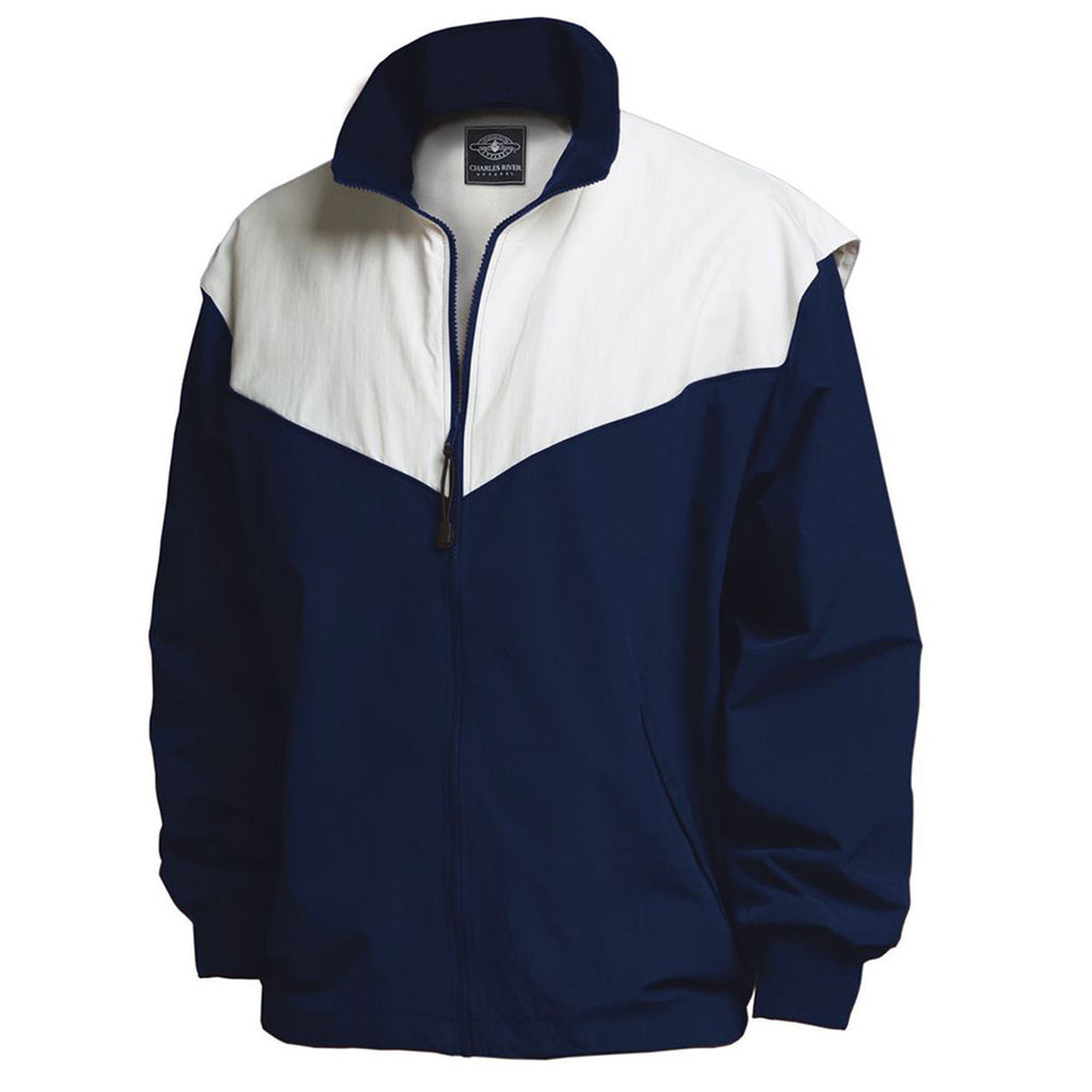 The Charles River Youth Navy/White Championship Jacket is the perfect custom apparel for your company-sponsored youth sports teams. Kids can wear this as a warmup layer for their uniform, or as everyday wear to show team pride. The two-toned design draws the eye right to your logo on the chest, making this clothing an effective marketing tool that puts your brand in the minds of the next generation of potential customers and clients. If your company is universally recognized and your logo is a fashion statement, you could sell this product to the general public.Highlights