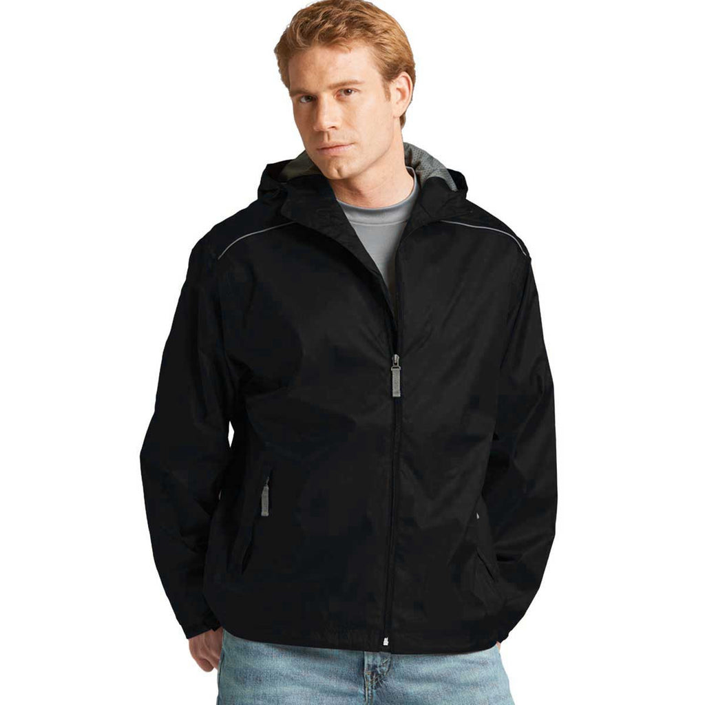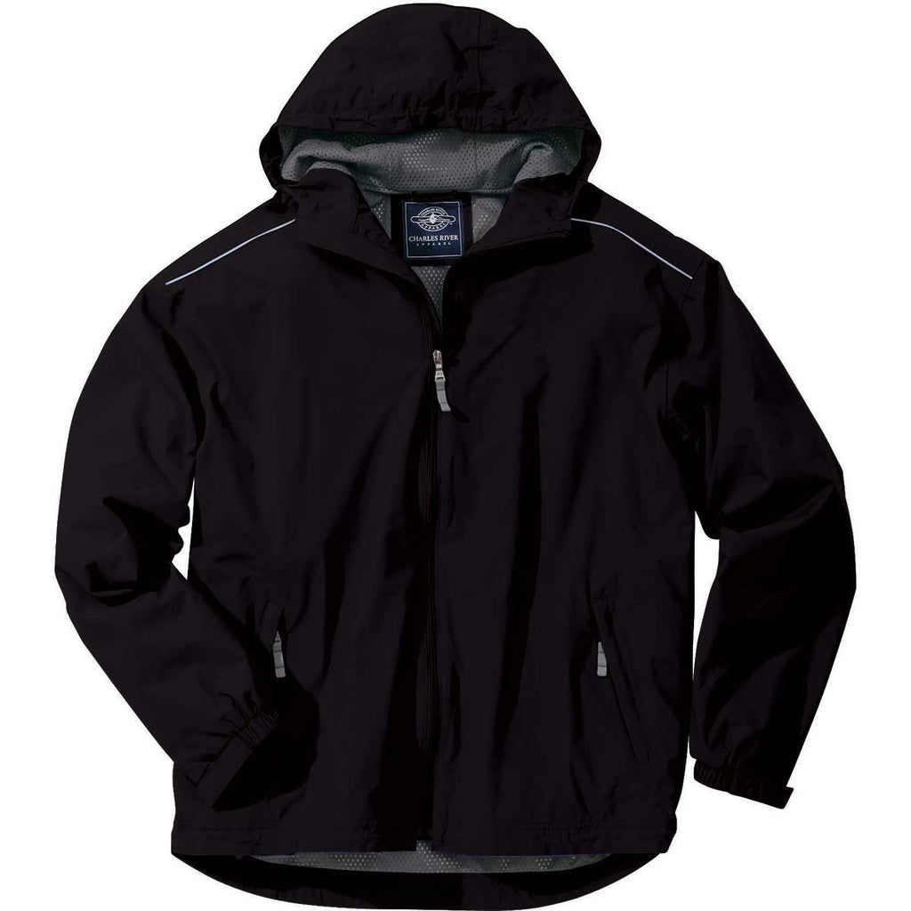 Hydralite Nylon. Taffeta nylon in the sleeves. An open drop-tail hem for breathable coverage. This Charles River Men's Black Nor'Easter Rain Jacket may look simple and stylish, but it's got all of the details right to give you the kind of weather protection you need. And that weather protection never comes at the expense of comfort, flexibility, and breathability. In fact, you may end up wearing this rain jacket so often that you can't wait until it rains. Add your custom logo and you can wear it to display your brand with pride-or turn it into a stellar corporate gift for people to enjoy themselves.Highlights