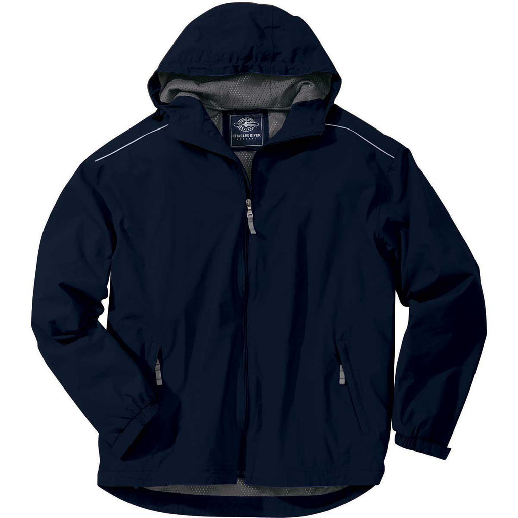Hydralite Nylon. Taffeta nylon in the sleeves. An open drop-tail hem for breathable coverage. This Charles River Men's Navy Nor'Easter Rain Jacket may look simple and stylish, but it's got all of the details right to give you the kind of weather protection you need. And that weather protection never comes at the expense of comfort, flexibility, and breathability. In fact, you may end up wearing this rain jacket so often that you can't wait until it rains. Add your custom logo and you can wear it to display your brand with pride-or turn it into a stellar corporate gift for people to enjoy themselves.Highlights