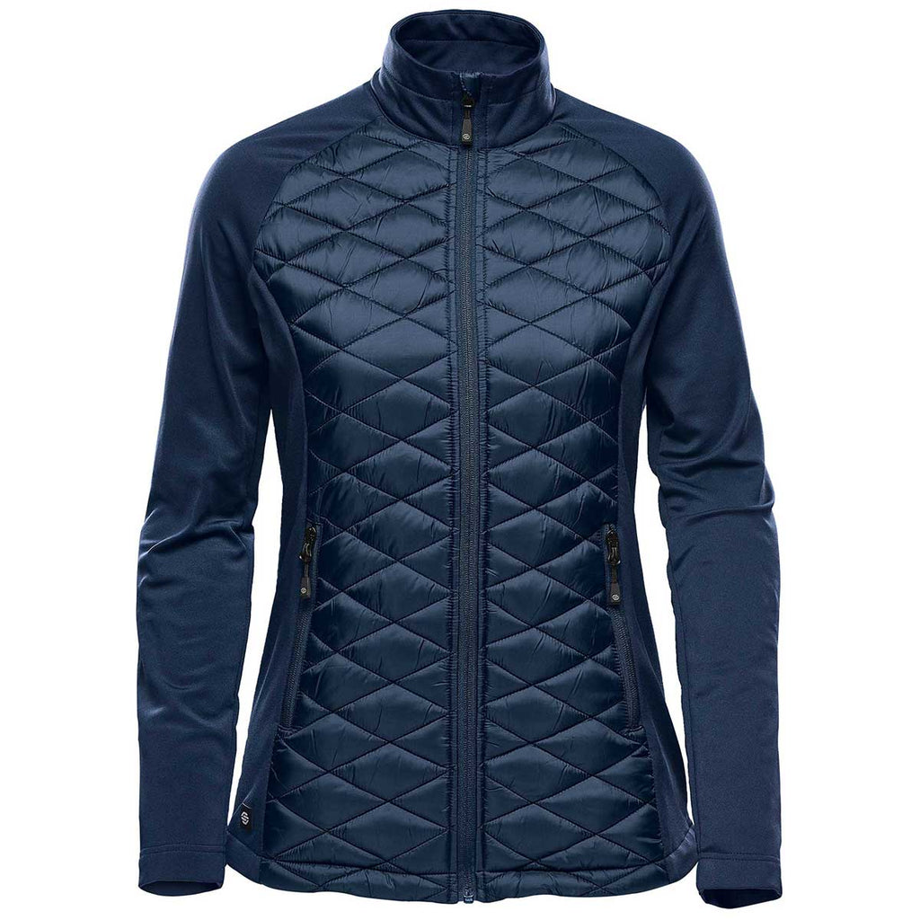 Stand up to Mother Nature with a custom Stormtech Women's Indigo Boulder Thermal Shell. Perfect for cold weather, the insulated quilted body will keep your core warm while maintaining breathability. Princess seams offer a feminine look that can be used as corporate apparel or given as gifts for almost any occasion. Add a company logo to use as employee apparel for those who need to work outdoors. The easy to layer thermal shell has a full zip front with side, zippered hand pockets for convenience.Highlights