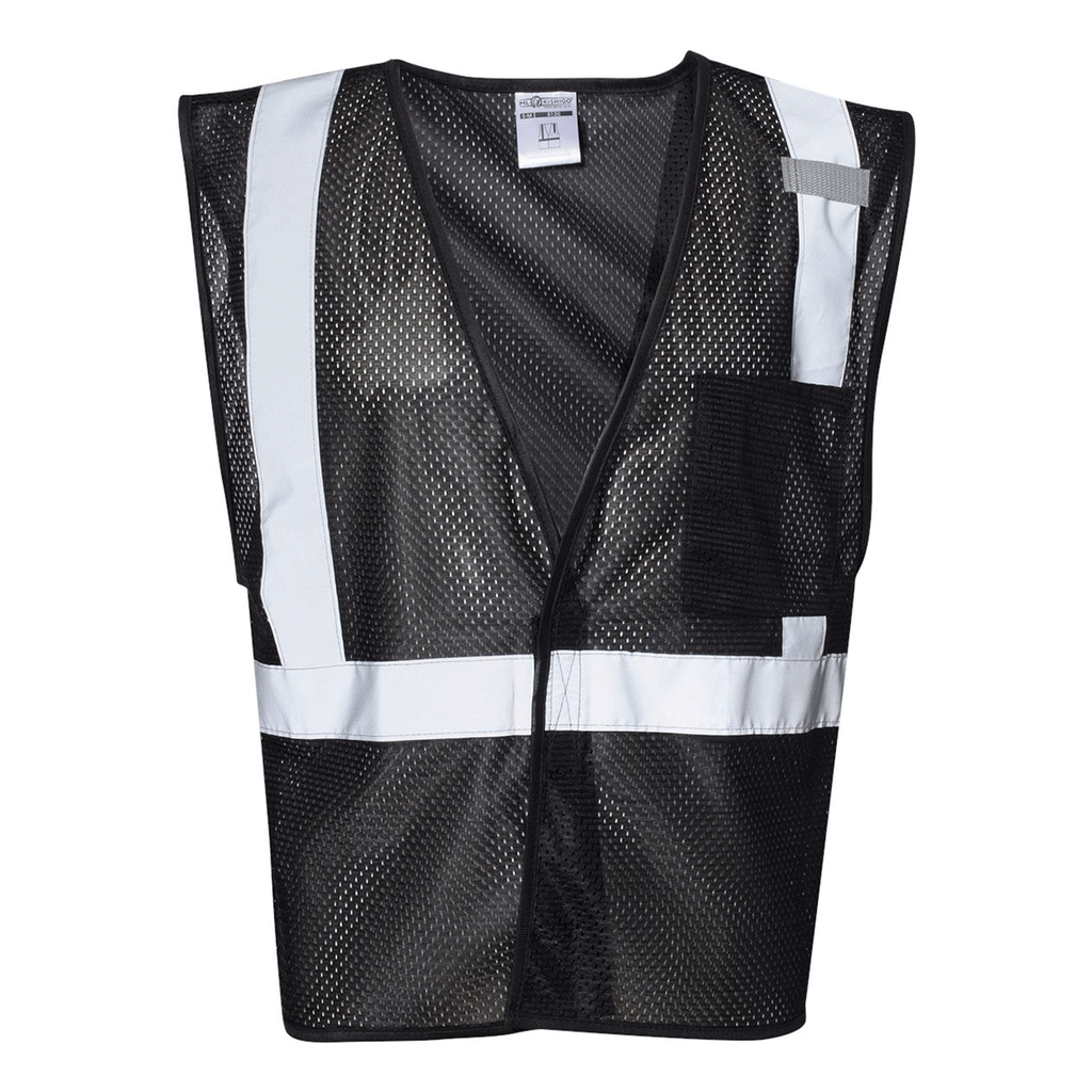 Safety first with an ML Kishigo Men's Black Enhanced Visibility Non-ANSI Vest. Make sure your company based workers are safe when out on the job with the 100% polyester mesh vest with a 4 inch wide hook and loop front closure. Perfect as workwear in the industrial apparel line, this vest has a left chest mic tab and left chest pocket for a radio clip or other small items. For those who need to be outdoors in the warmer months as flagmen, working high lines, or any other job in which they need to be noticed, this is a must have.