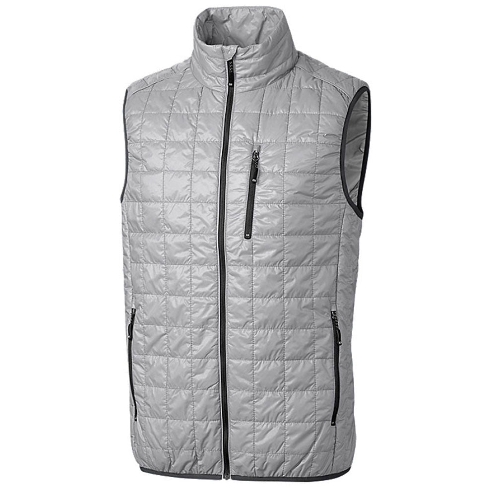 Stay warm with the Cutter & Buck Men's Polished Tall Rainier Vest. With the addition of your company logo, this vest is the perfect way to market your company in a fashionable way. The vest has a full-length zipper at the front plus a smaller zipper near the middle for a breast pocket space. Added zippers are included for traditional hand pockets on both sides. The surface comes with a padded nylon feature with taffeta insulation to keep you warm. The brilliant and soft surface adds a comfortable space for any special outing of interest to you. Try this out for a special winter event or other cool-weather activity at your business. This is a nice prize for company events in the winter. Don't forget to add a brilliant custom logo on the surface.Highlights
