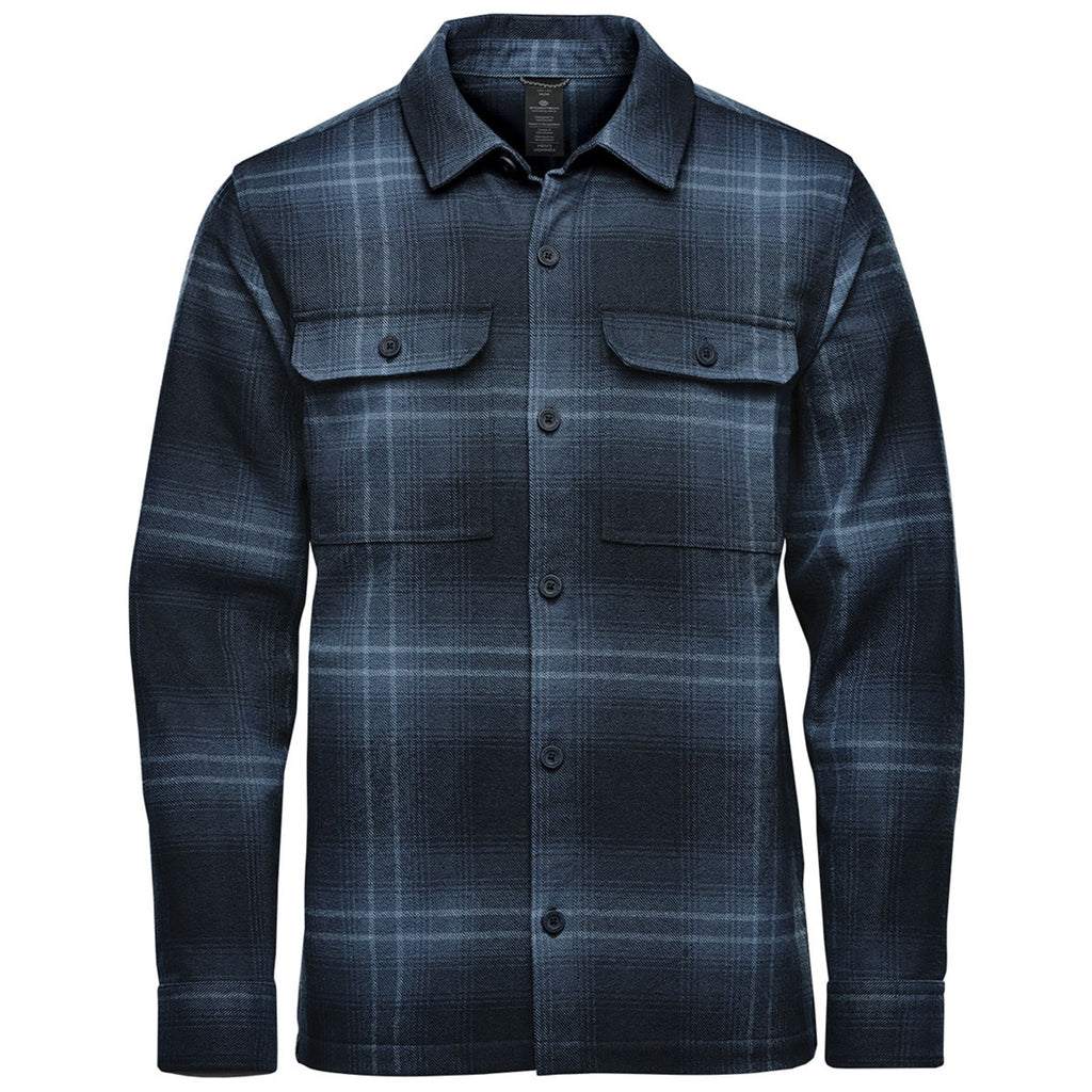 Choose a corporate logo for the Stormtech Men's Midnight/Dusk Highland Plaid Shacket for a refreshing take on a traditional outdoor plaid shirt. The durable shacket has heavy-duty center front buttons for easy layering over your favorite shirt or tee. Ideal for those who work outdoors or enjoy spending time outside, this is a versatile option for both.