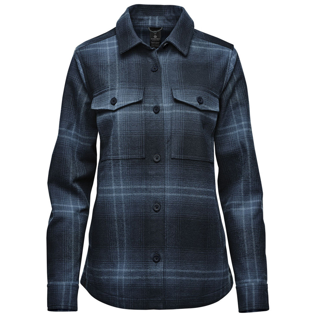Stormtech Women's Midnight/Dusk Highland Plaid Shacket with a custom logo is a fun take on a traditional flannel. The easy-to-wear and layer shacket is an urban outdoor staple whether heading to school, work, or on an adventure of your choosing. The durable buttons and soft feel make this shacket an instant favorite for everyone who wants to create their own style.Corresponding Men's Style: Stormtech Men's Midnight/Dusk Highland Plaid Shacket