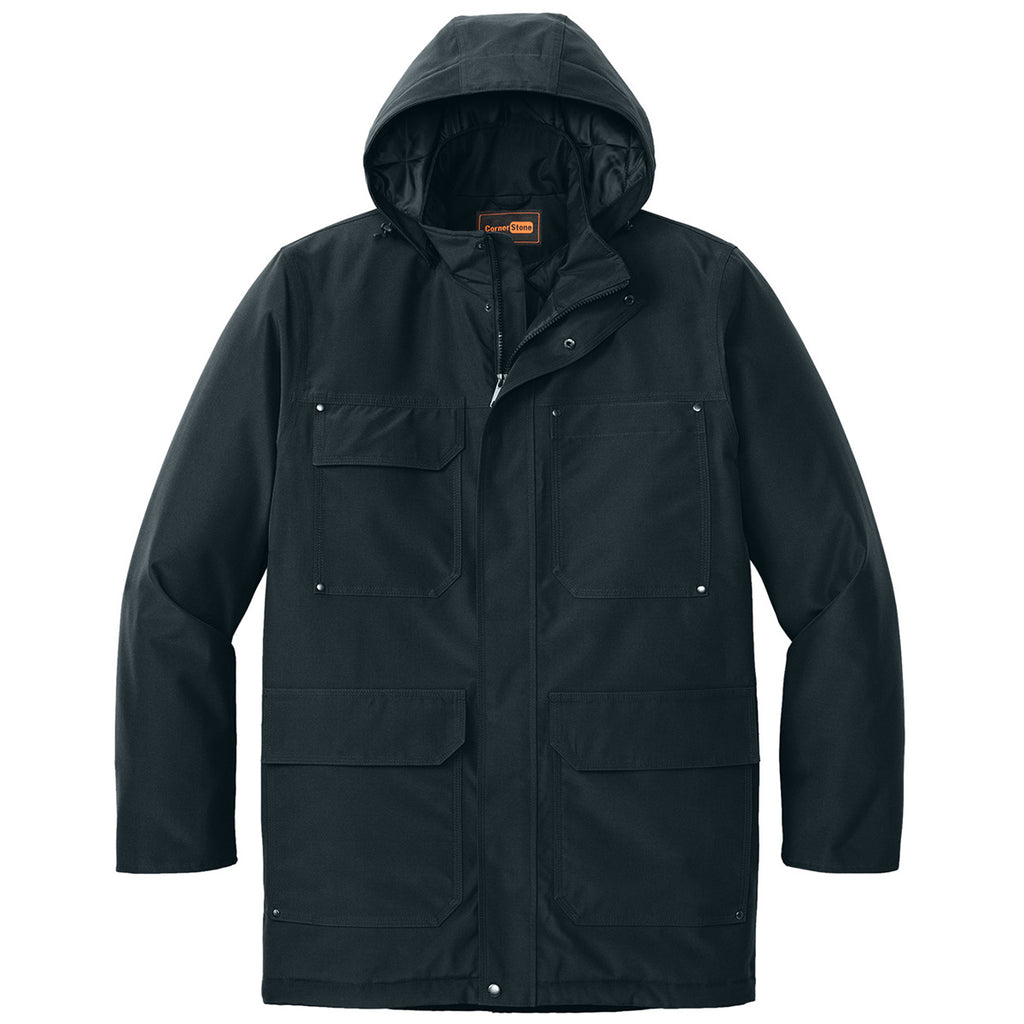 Design a custom logo for the CornerStone Men's Navy Elements Insulated Parka to give as a gift to the outdoorsman in your life. This insulated parka is made for outdoor work and play. Ideal for farmers, contractors, or those who love to brave the weather, it is a real must-have. Place an order right away.Highlights