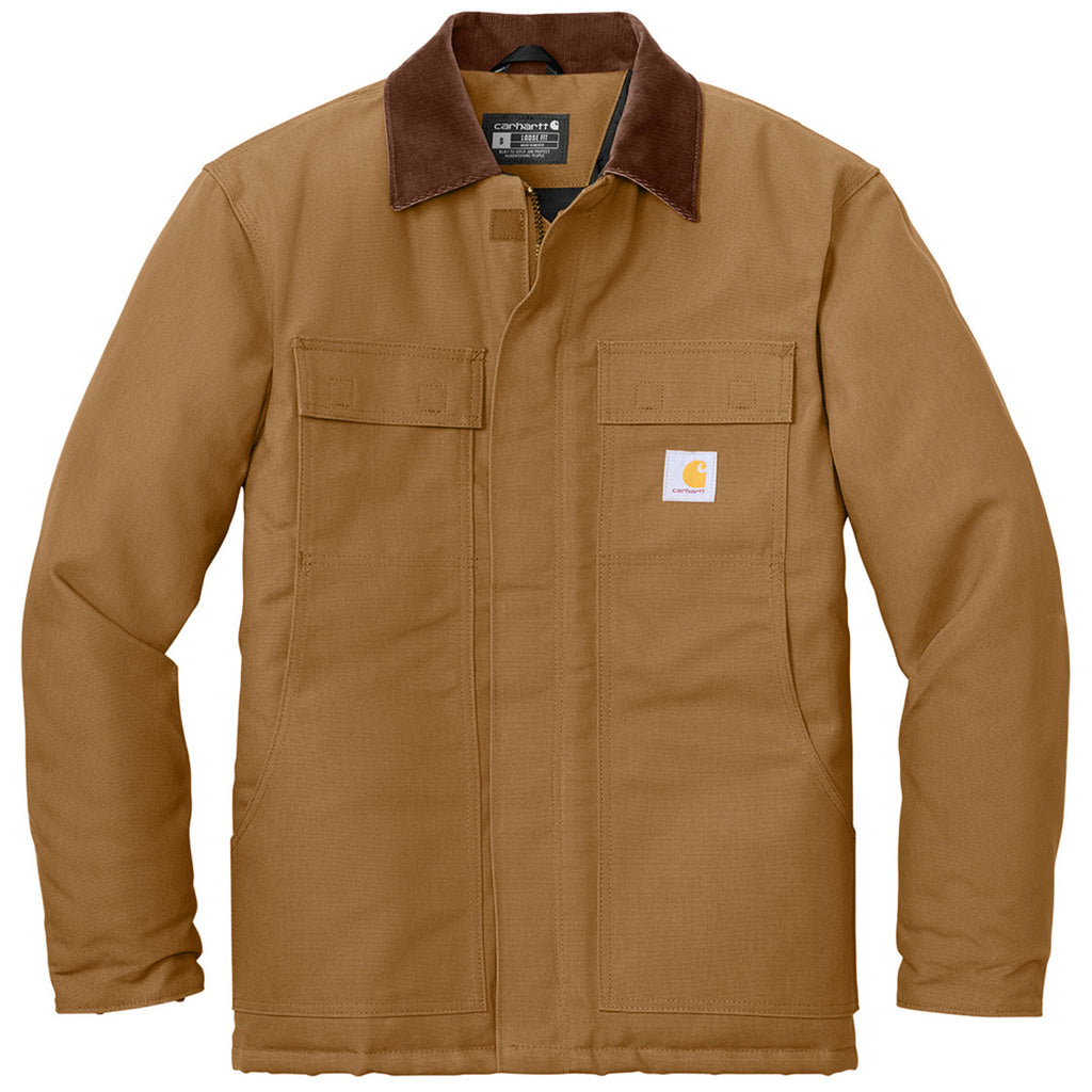 Add a corporate logo to the Carhartt Men's Carhartt Brown Tall Duck Traditional Coat to create employee wear that is as tough as the job they do. Made with Wind Fighter technology to protect you from the elements, this jacket is perfect for linesmen, ranchers, contractors, and those who have to brave the elements.This product can only ship within the United States and Canada.