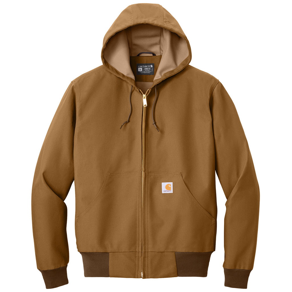 Carhartt Men's Carhartt Brown Tall Thermal-Lined Duck Active Jacket with a corporate logo is a wonderful way to look and feel great while displaying the company name. This tough jacket lives up to the Carhartt brand with a full front zip and an attached drawstring hood. Order for all the outdoor workers and adventurers in your life.This product can only ship within the United States and Canada.