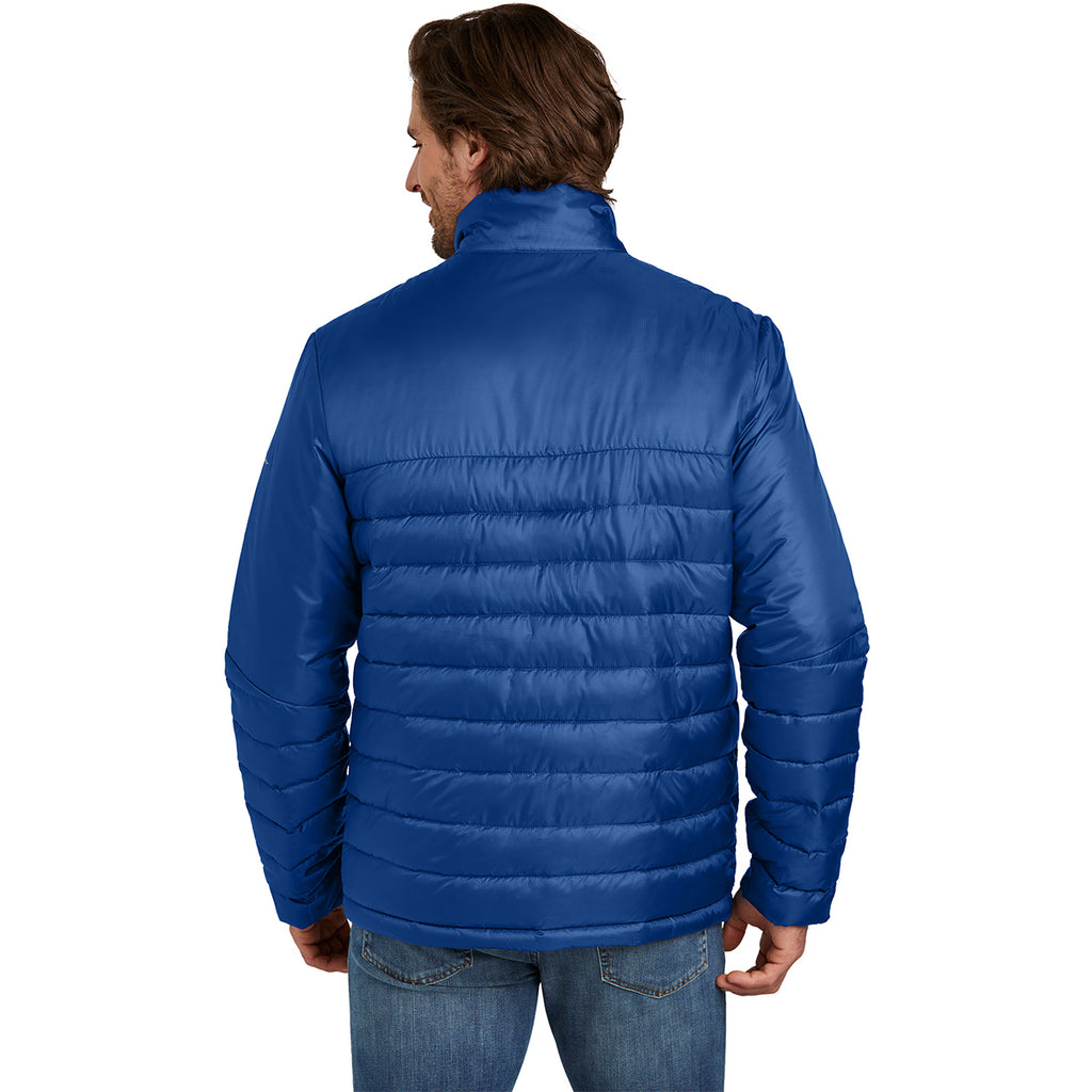 Eddie Bauer Men's Cobalt Blue Quilted Jacket with a custom logo is ideal for those who work or play in the Great Outdoors. The quilted jacket is warm without being bulky and maximized to keep you warm while building snowmen, hitting a black diamond slope, or watching an outdoor game with friends. Place an order today.This product can only ship within the United States, Puerto Rico, Canada, and Mexico.