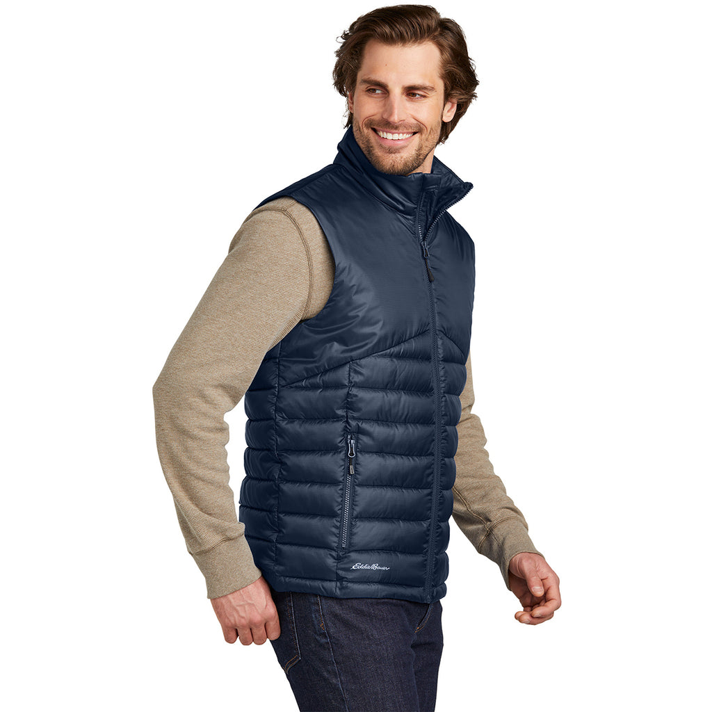 Add your custom logo to the Eddie Bauer Men's River Blue Navy Quilted Vest for a performance layer that is ready for all your outdoor adventures. Whether mountain climbing, skiing, or just enjoying cooler weather, this vest can be worn as an outer or middle layer with ease. Water repellant, quilted, and not bulky, this is a must-have. Place an order today.This product can only ship within the United States, Puerto Rico, Canada, and Mexico.