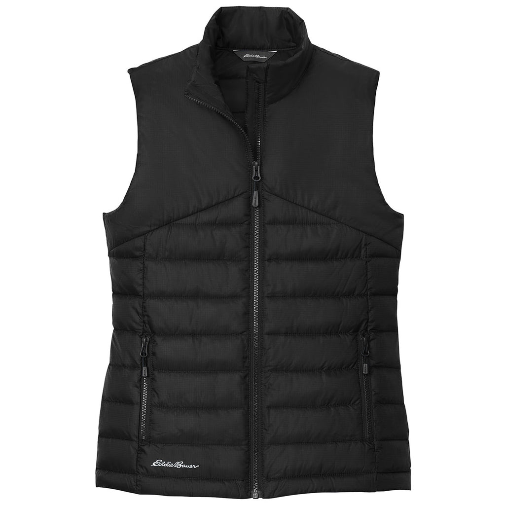 Eddie Bauer Women's Deep Black Quilted Vest with a custom logo is a fun and fashionable way to stay warm. Worn as an outer or middle layer, this vest will keep you warm without creating much added bulk. The mock neck and full zip front make this great for hiking, running, or general day-to-day errands. Place an order today.This product can only ship within the United States, Puerto Rico, Canada, and Mexico.
