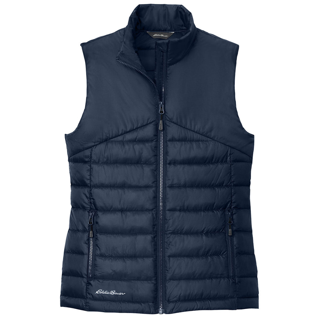 Eddie Bauer Women's River Blue Navy Quilted Vest with a custom logo is a fun and fashionable way to stay warm. Worn as an outer or middle layer, this vest will keep you warm without creating much added bulk. The mock neck and full zip front make this great for hiking, running, or general day-to-day errands. Place an order today.This product can only ship within the United States, Puerto Rico, Canada, and Mexico.