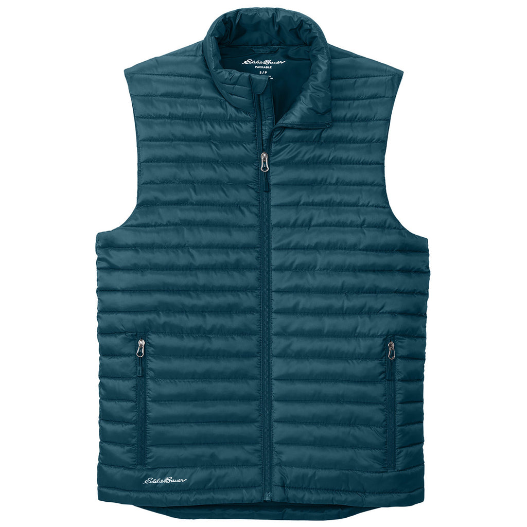 Eddie Bauer Men's Adriatic Blue Packable Quilted Vest with a custom design is a fun and functional way to stay toasty while enjoying the Great Outdoors. This packable vest can be worn and then easily packed away when it is no longer needed for the day. Perfect for hiking, camping, and hunting. Place an order right away.