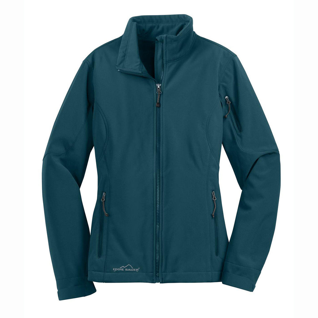 Short of an igloo, nothing stops weather in its tracks quite like a softshell jacket. The Eddie Bauer Women's Dark Adriatic Blue Softshell Jacket is no slouch either. It's a weather-stopping, three-layer softshell featuring 3000MM rated waterproof fabric and 3000G/M2 breathability. The princess seams keep it contoured to match your fit, while the zippered left sleeve pocket and adjustable tab cuffs provide a world-ready utility that can't be matched by most jackets that are also this comfortable. An embroidered corporate or company logo would make this the ideal professional layering item across most of the year's seasons, especially in cool climates.
