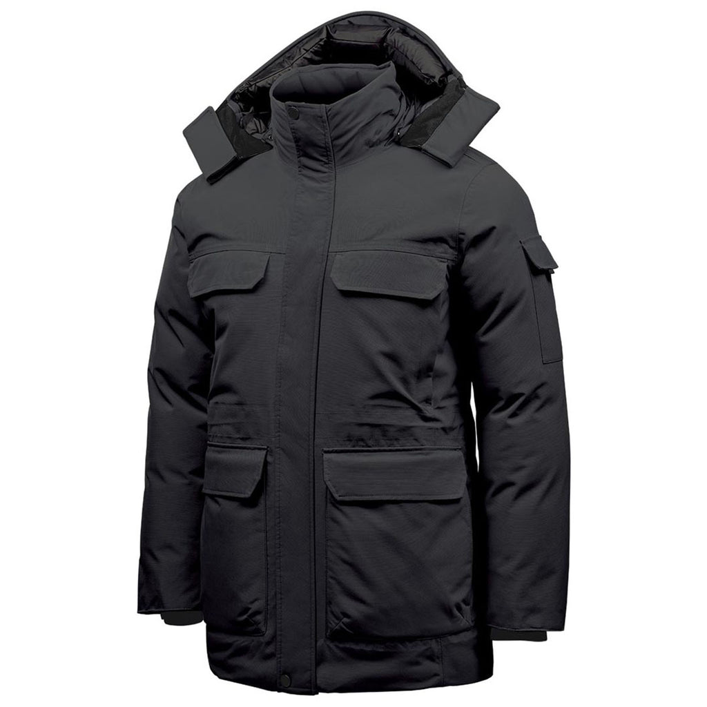 Stormtech Men's Black/Granite Denali Parka with a custom logo offers extreme comfort in the extreme cold. Delivering protection from the elements whether trekking through the woods or commuting to work, this parka is ready to face the day. Multiple pockets, a hood, and a storm flap make this a must-have. Place your order today.Corresponding Women's Style: Stormtech Women's Black/Granite Denali Parka